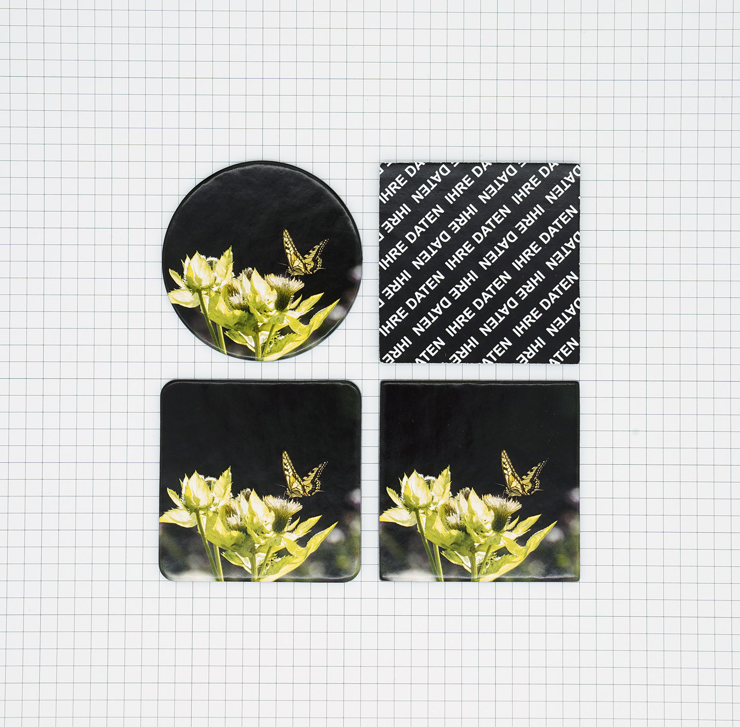 Vorder- und Rückseite der Karten sowie auch die Verpackung sind individuell mit Ihren Motiven bedruckbar, lediglich die CE-Pflichtangaben müssen auf der Verpackung von außen sichtbar angebracht werden.